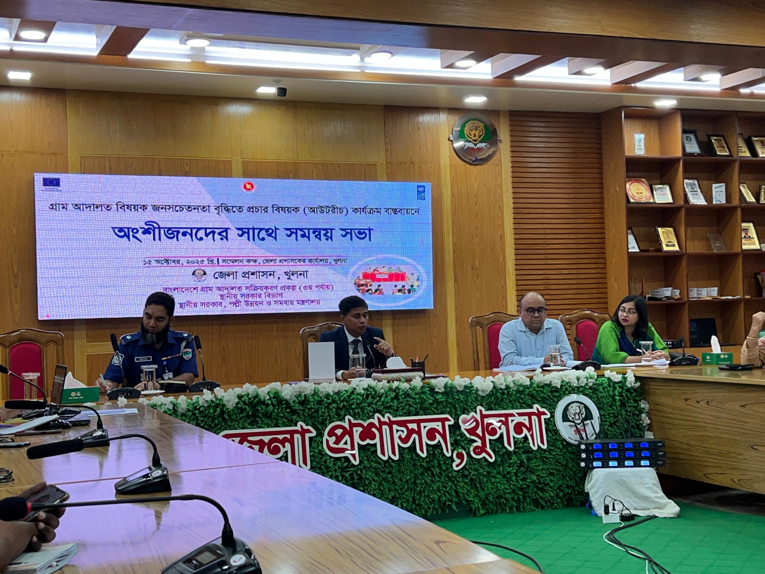 গণপ্রজাতন্ত্রী বাংলাদেশ সরকারের স্থানীয় সরকার, পল্লী উন্নয়ন ও সমবায় মন্ত্রনালয় এর আওতাধীন স্থানীয় সরকার বিভাগ, ইউএনডিপি ও ইউরোপিয়ান ইউনিয়ন এর যৌথ অর্থায়নে বাস্তবায়নাধীন “বাংলাদেশে গ্রাম আদালত সক্রিয়করণ ৩য় পর্যায় প্রকল্প’ এর উদ্যোগে এই সভা আয়োজিত হয়। খুলনা জেলার সরকারি, বেসরকারি প্রতিষ্ঠানের প্রতিনিধি এবং গণমাধ্যম প্রতিনিধিগণ এতে অংশগ্রহণ করেন।